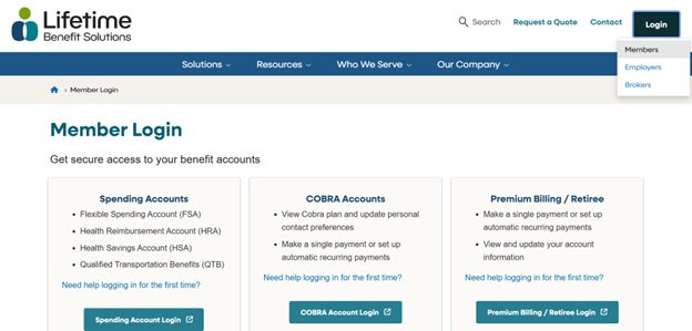 Choose "Spending Account Login" and that will display the Consumer Portal Login Page.