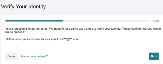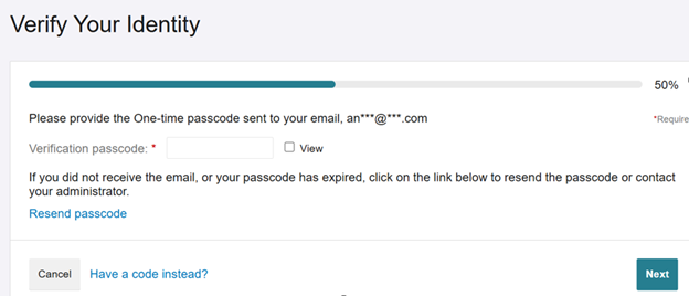 Enter the verification code that you received via your valid e-mail address.